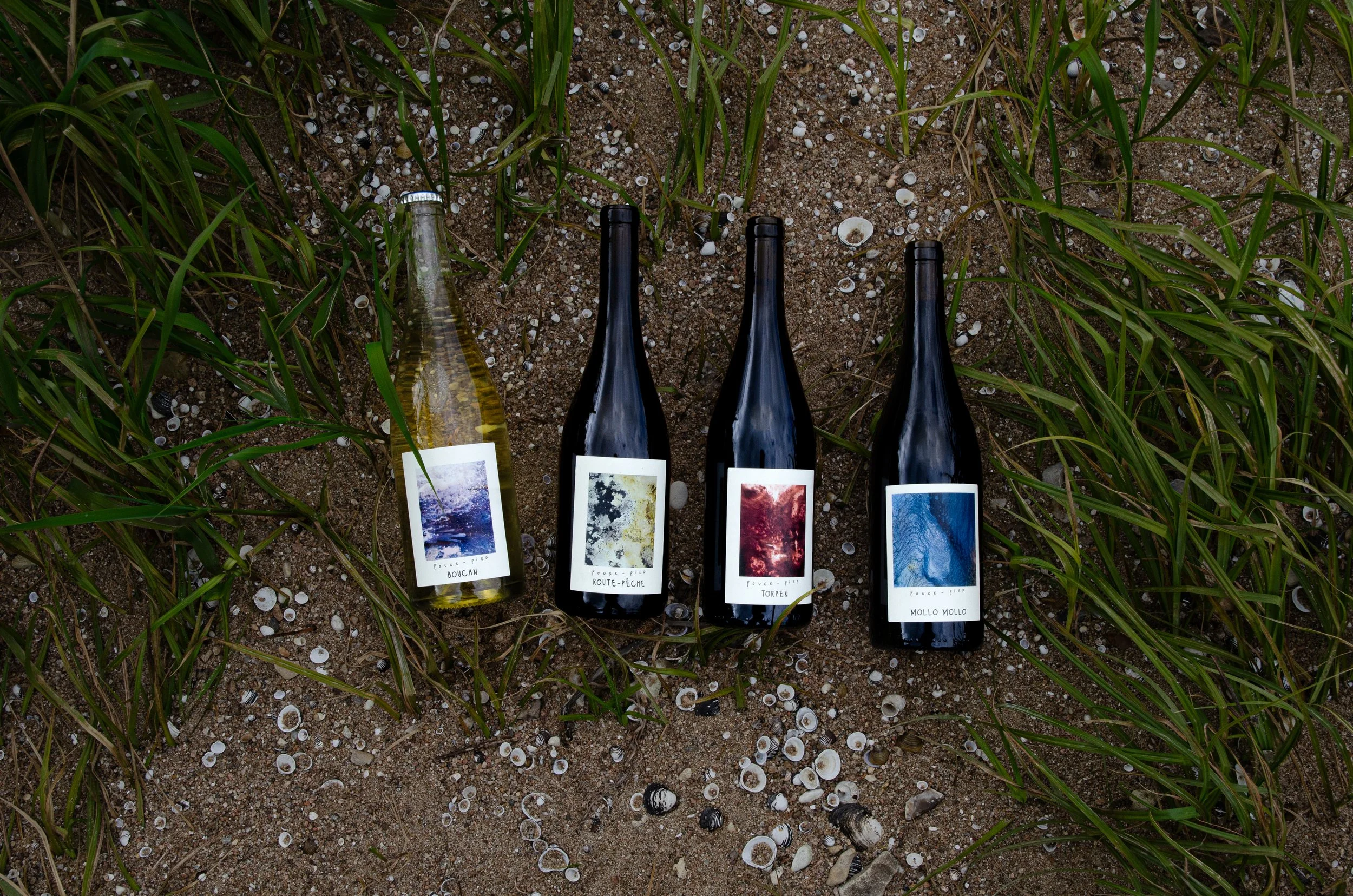 Etiquettes co-réalisées avec Darius Chapuis (Oeil Oblique) pour le domaine Peltier-Ravineau et Garance Rigoni pour le domaine Pouce-Pied.